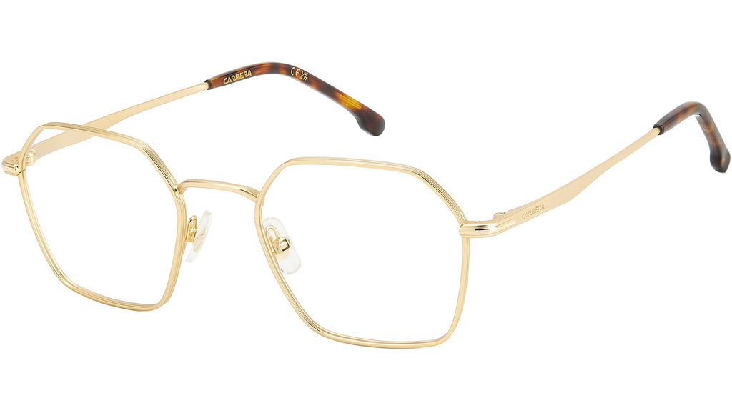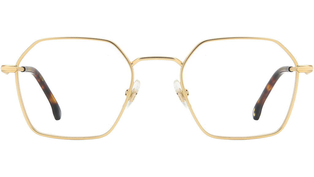 Occhiali da vista Carrera modello 335 colore AOZ matte gold. Allure vintage e stile intramontabile per questi occhiali da vista Carrera dai profili sottili. Indimenticabile la silhouette del frontale, vagamente esagonale, leggera sul volto perché realizzata in acciaio inossidabile. Le aste in metallo sono scolpite della classica shape a pinna, eredità del design storico Carrera. Il brand è esplicitato nella firma laserata e nella bandiera che colora i terminali multistrato. Disponibile in più varianti colore, anche con frontale smaltato.