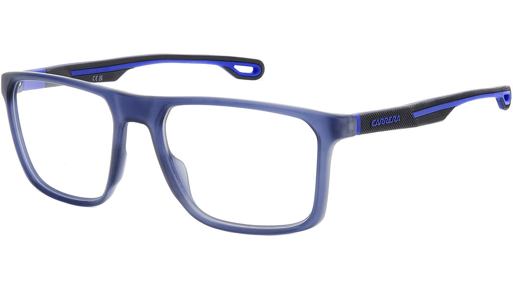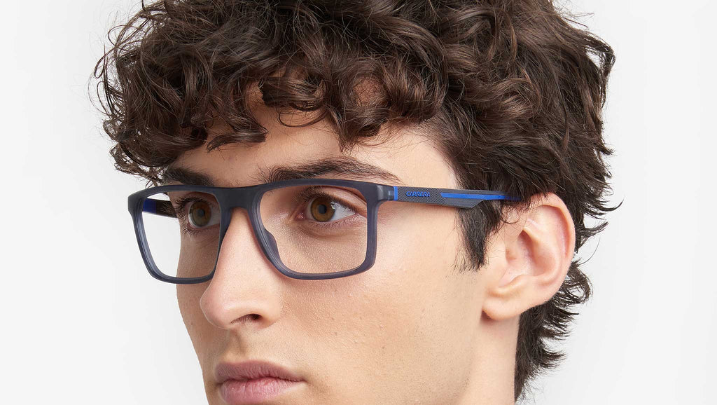 Occhiali da vista Carrera modello 4413 colore FLL matte blue. Occhiali da vista Carrera votati all’estetica athleisure. La montatura iniettata ha una silhouette rettangolare assolutamente versatile e maschile. La vera innovazione è nelle aste dal design dinamico, con cerniere flessibili e inserti gommati per una maggiore stabilità. L’effetto bi-color è un omaggio alla flag Carrera. I terminali forati sono presi in prestito dal mondo active wear e prolungano le performance sportive nella quotidianità.