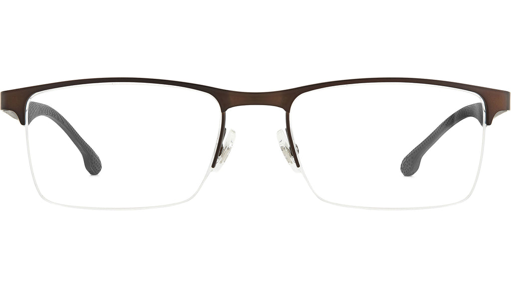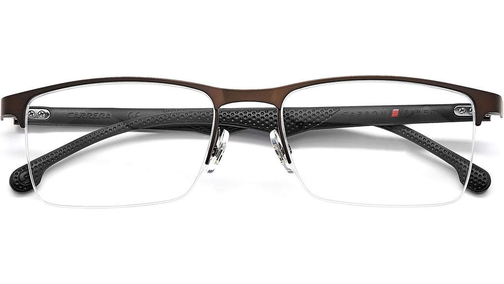 Occhiali da vista Carrera modello 8846 colore VZH matte bronze. Al tempo stesso leggeri e robusti, questi occhiali da vista da uomo combinano l’ultima innovazione in termini di materiali con una silhouette minimale e dall’appeal sportivo. Il frontale rettangolare è realizzato in acciaio inossidabile lucido e abbinato alle iconiche aste Carrera in fibra di carbonio – resistenti e quasi senza peso. Un set di naselli in silicone e inserti in gomma antiscivolo lungo la parte interna delle aste assicurano un fit confortevole e un finish contemporaneo.