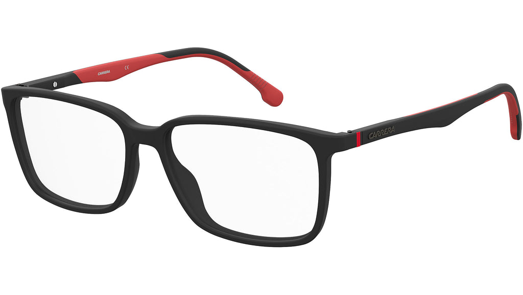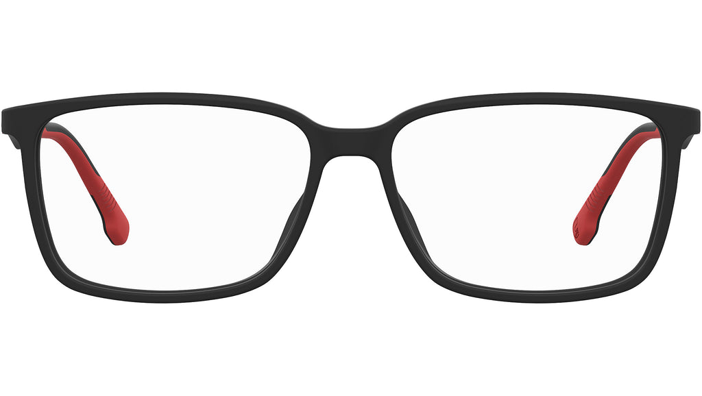 Il know-how tecnologico e un’estetica raffinata si incontrano in questi occhiali da vista a doppia iniezione. Progettati per soddisfare i bisogni dell’uomo moderno, presentano la montatura rettangolare in acetato e aste con l’interno rivestito in gomma Megol antiscivolo, per garantire il massimo comfort e tenuta. Da notare anche le cerniere flessibili evidenziate dagli iconici dettagli rosso Carrera, che rendono questi occhiali graduati un vero accessorio di stile.