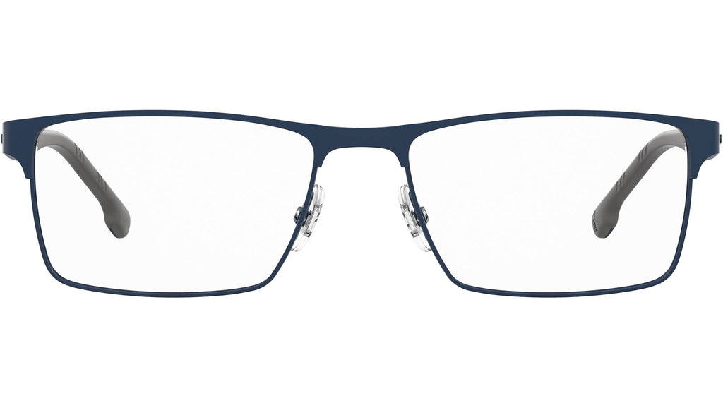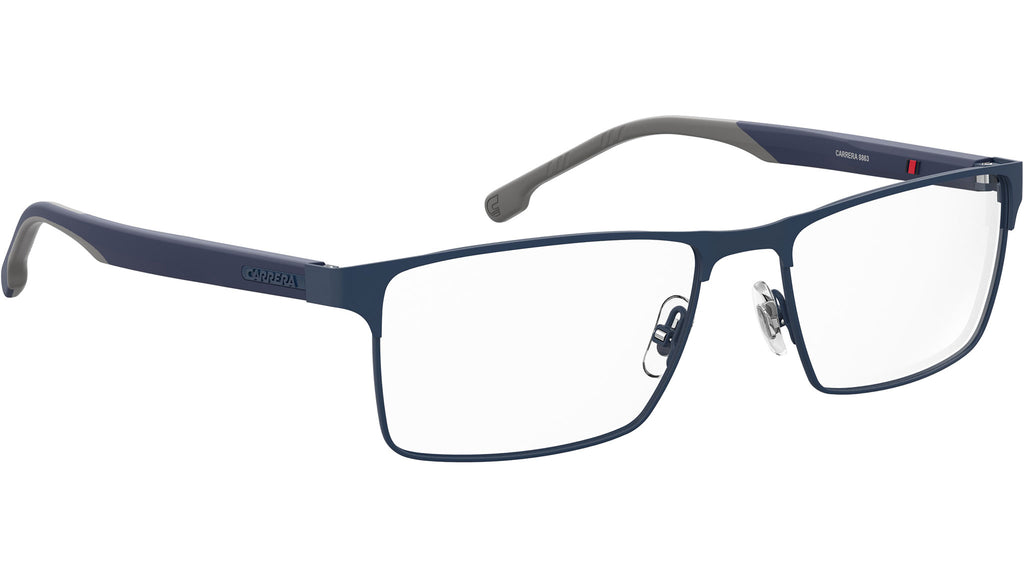 Occhiali da vista Carrera modello 8863 colore PJP blue. Ideali per uno stile di vita attivo e dinamico, questi occhiali da vista squadrati vantano una leggera montatura dalle linee essenziali. Il raffinato frontale rettangolare in metallo offre un interessante contrasto con il design sportivo delle aste – realizzate in poliammide sfruttando la tecnologia a doppia iniezione e accentuate con gli inserti in gomma Megol che ne migliorano aderenza. Le cerniere flessibili offrono un fit personalizzato, che si adatta a ogni forma del viso.