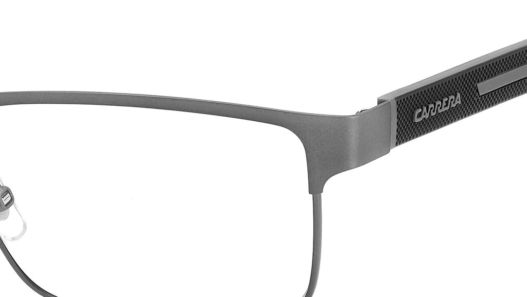 Occhiali da vista Carrera modello 8884 colore R80 matte dark ruthenium. Dedicati all’uomo dallo stile di vita attivo, questi occhiali da vista Carrera offrono comfort e vestibilità impeccabile anche nelle giornate più movimentate. Il frontale in acciaio inossidabile offre un fit personalizzato grazie ai naselli regolabili e alla possibilità di scegliere lenti in due diversi calibri. Il mood sportivo del modello è sottolineato dalle aste leggere realizzate con tecnologia a doppia iniezione, corredate da inserti in gomma con colore a contrasto.