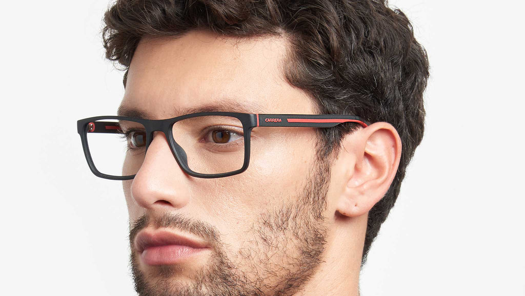 Occhiali da vista Carrera modello 8885 colore BLX matte black red. La libertà di uno stile sportivo si esprime con questo occhiale da vista Carrera. La sua peculiarità tecnica è nel materiale – poliammide – e nella tecnologia a doppia iniezione con cui è realizzato: garanzia di leggerezza e resistenza. È disponibile in diverse varianti cromatiche, tutte caratterizzate dai contrasti di colore sulle aste, destinati a creare un look allo stesso tempo casual e atletico.