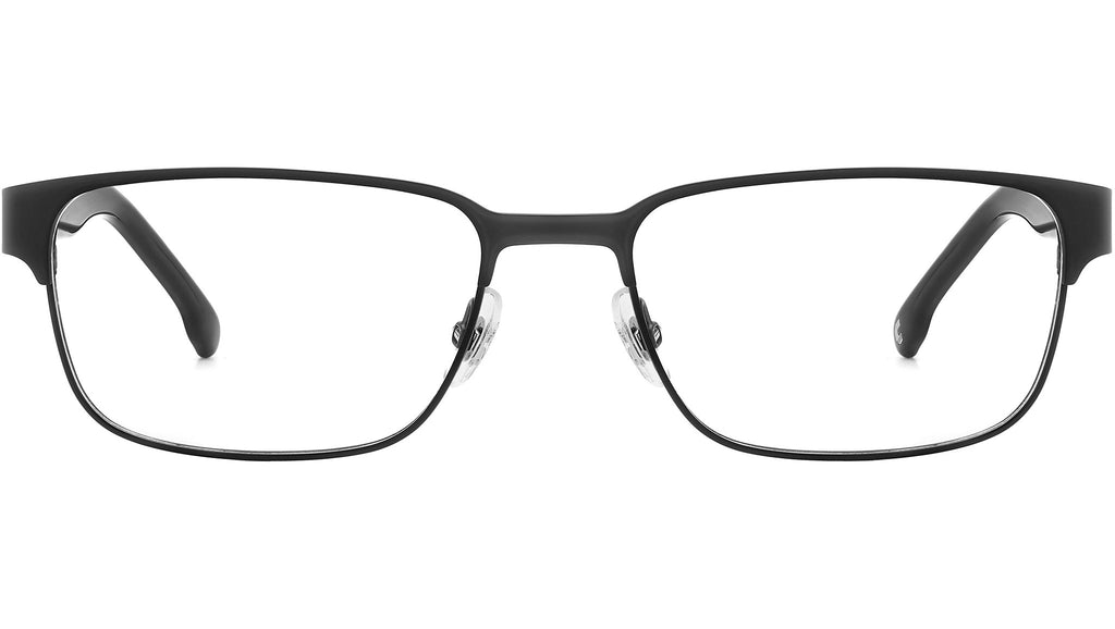 Occhiali da vista Carrera modello 8891 colore 003 matte black. Occhiali da vista Carrera dallo stile pulito e minimale, che ben completano gli outfit di tutti i giorni. La forma rettangolare è versatile ed evergreen, e veste alla perfezione grazie a cerniere flessibili e resistenti, unite alla praticità dei naselli regolabili. Il frontale è in acciaio inossidabile, le aste in acetato. La placca metallica con il logo Carrera firma il modello con carattere.