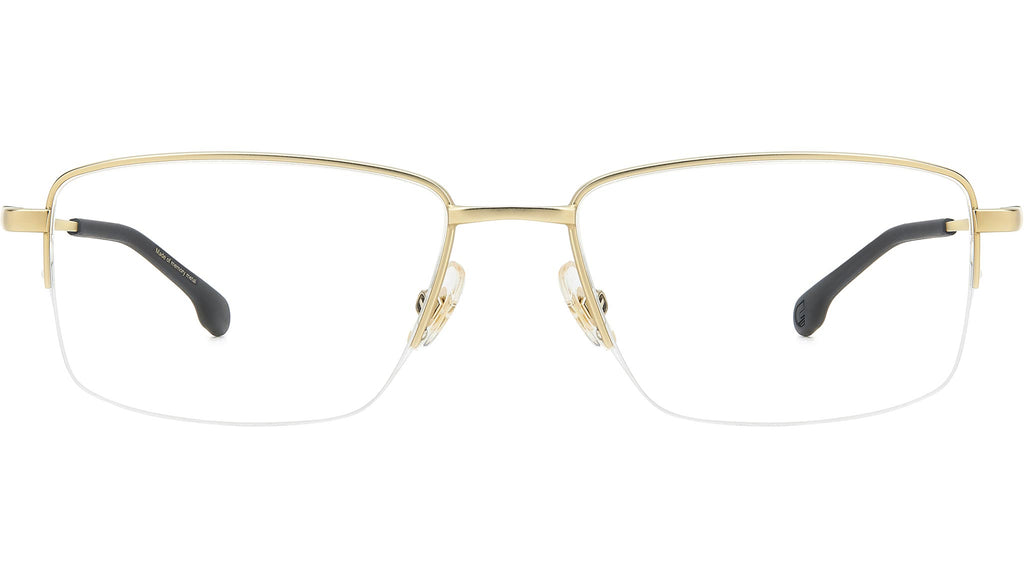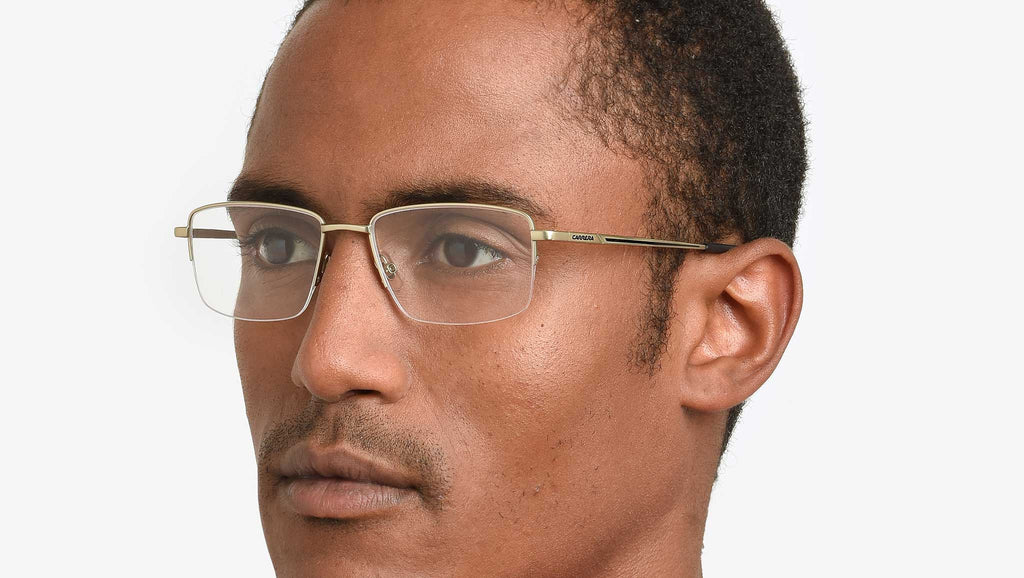 Occhiali da vista Carrera modello 8895 colore AOZ matte gold. Carrera propone occhiai da vista dalle qualità tecniche incomparabili. Le aste e il ponte tra le lenti sono infatti realizzati in Memory Metal, materiale premium che assicura massima flessibilità e resistenza all’uso. Il carattere funzionale del modello è esaltato dal design del frontale a mezza montatura, la cui calzata è ottimizzata dai naselli regolabili. L’identità del brand si esprime con la flag Carrera stampata sulle aste.