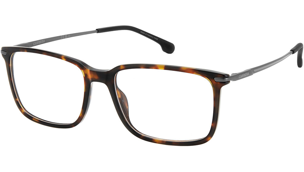 Occhiali da vista Carrera modello 8897 colore 086 havana. La tecnologia e la qualità di Carrera danno vita a occhiali da vista dall’alto valore tecnico. Questo modello è costituito da un frontale in acetato leggero, semplicemente impeccabile nelle linee e nei profili sottili. Le aste sono in Memory Metal, materiale premium dotato di grande flessibilità, per un utilizzo quotidiano all’insegna del comfort. La palette colori comprende anche le varianti con al flag Carrera stampata sulle aste.