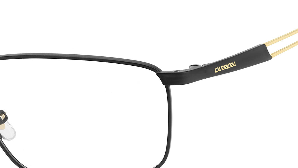Occhiali da vista Carrera modello 8900 colore I46 matte black gold. Sono dedicati all’uomo dallo stile funzionale e moderno questi occhiali da vista Carrera. Perfetti da indossare da mattina a sera, grazie alla leggerezza della costruzione in acciaio inossidabile con naselli regolabili. Il modello è caratterizzato dalle aste con apertura dalla colorazione a contrasto e logo coordinato: un tocco inconfondibilmente Carrera.