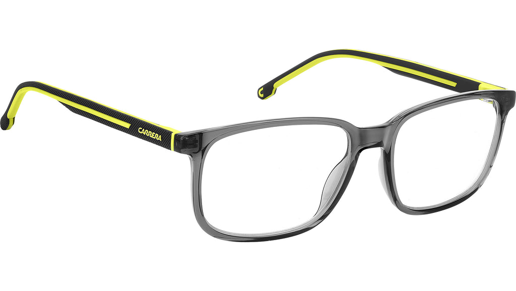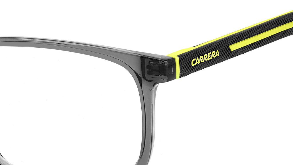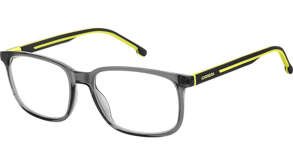 Occhiali da vista Carrera 8916 0UV uomo con montatura rettangolare in poliammide ecologica grigio giallo fluo e lenti demo. Un occhiale da vista Carrera che conquista, con il design di ispirazione sportswear. Si compone di aste texturizzate con inserti gommati tono su tono oppure a contrasto - ovviamente anche in rosso, colore simbolo di Carrera. Classico frontale rettangolare, profili essenziali e vestibilità leggera: questo modello è l’accessorio passe-partout di ogni look, da quelli smart per l’ufficio a quelli casual del weekend. Linea: Sport. Codice modello: 109493. Codice colore: 0UV. Rivenditore autorizzato Carrera online. Gli occhiali vengono consegnati con custodia e accessori originali e sono coperti dalla garanzia ufficiale di 12 mesi del produttore.