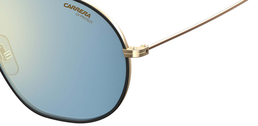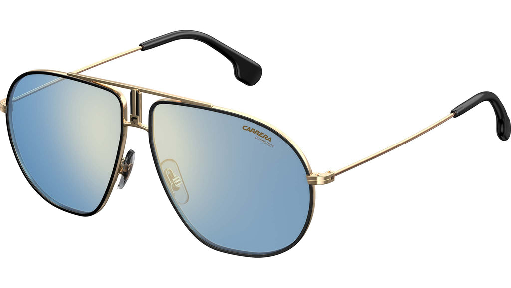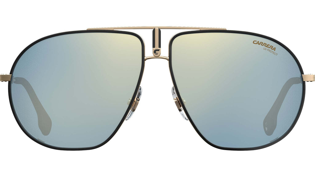 Le collezioni eyewear Carrera hanno lo sport nel proprio DNA e gli occhiali da sole Bound non fanno eccezione. Mentre la silhouette aviator è un classico senza tempo, la nuova variante colore proposta per la Primavera/Estate 2019 – un mix di metallo oro con finali in acetato nero e lenti a specchio blu – da una sferzata di energia giovanile. Il distintivo doppio ponte con il logo C e il monogramma abbinato all’interno del terminale sinistro, assicurano alla montatura classica una personalità sobria. Il risultato è un mix unico, raffinato ed inequivocabilmente Carrera.