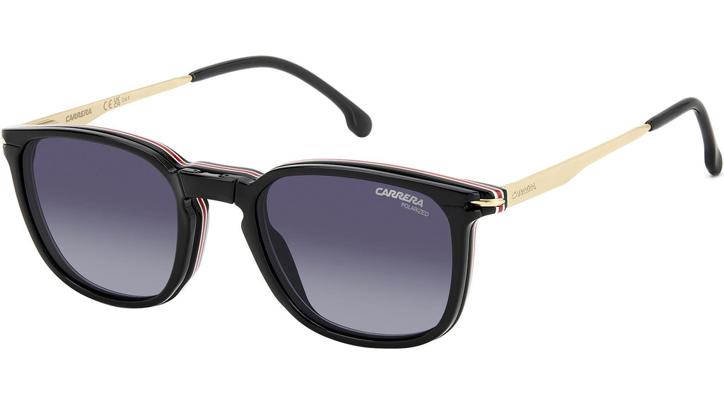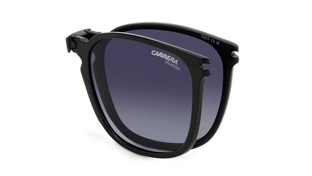 Occhiali da sole Carrera modello CA 332/CS colore 807 WJ black. Esteticamente impeccabili questi occhiali da vista con lenti da sole clip-on firmati Carrera. Forma squadrata per il frontale in acetato leggero, decorato dall’inserto metallico a forma di “C”. Quest’ultimo rimane visibile anche quando si indossano le lenti clip-on polarizzate: stile e praticità vanno a braccetto. Il dettaglio in più? Le lenti clip-on sono pieghevoli, perfette da portare sempre con sé. Molteplici le varianti colore, tutte impeccabili.