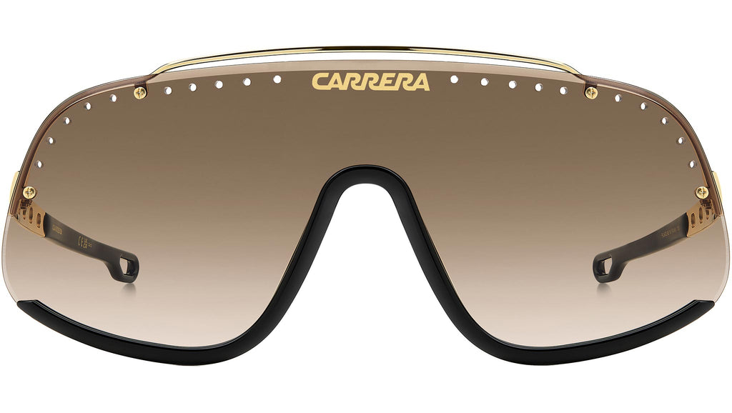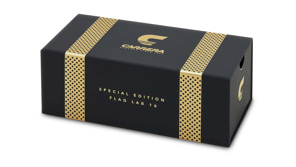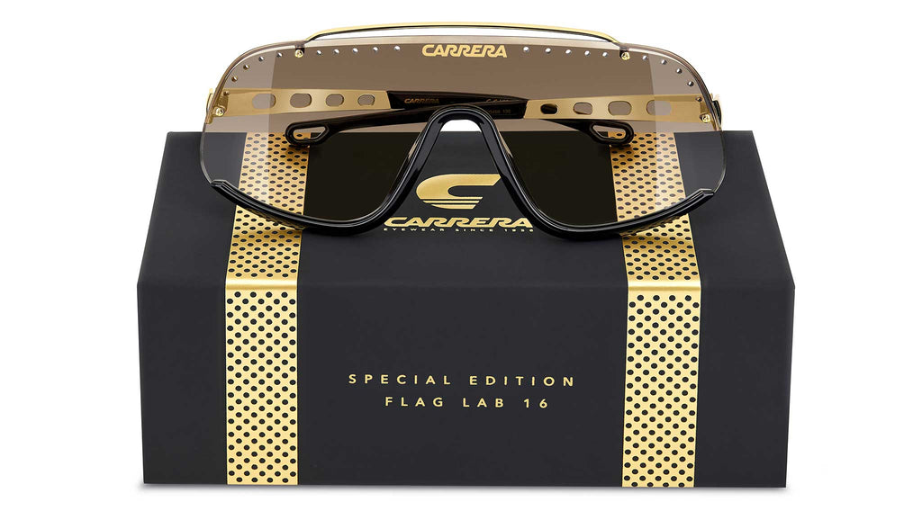 Occhiali da sole Carrera modello Flaglab 16 colore FG4 86 brown gold. La racing attitude di Carrera si esprime in questi occhiali da sole unisex. Il frontale è una maschera sormontata da un sottile ponte in metallo, completata da viti e fori decorativi. Le aste in metallo sono forate: mimano il design del volante delle auto d’epoca che gareggiavano nella Carrera Panamericana. Disponibile con lenti specchiate, anche arancioni per un effetto vintage garantito. Un modello da collezione che arriva con pack dedicato.