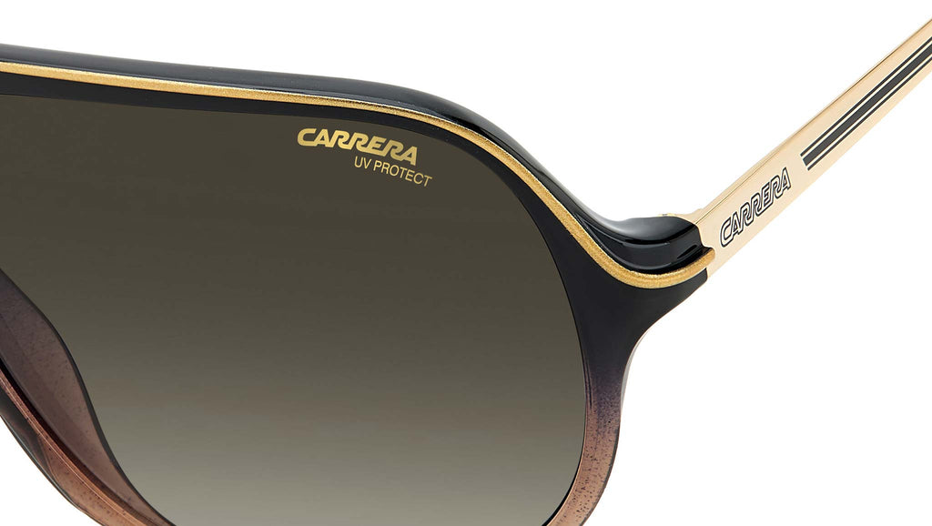 Parte della collezione che celebra il 65° anniversario di Carrera, questi occhiali da sole unisex reinterpretano un design iconico del brand. Il profilo rettangolare oversize è realizzato in acetato ed evidenziato da un’audace barra centrale che ne accentua il mood sportivo e contemporaneo. La caratteristica ‘C’, fieramente posizionata al centro del frontale, e il logo lettering lungo le aste rendono il modello immediatamente riconoscibile dai fan e gli appassionati di stile.