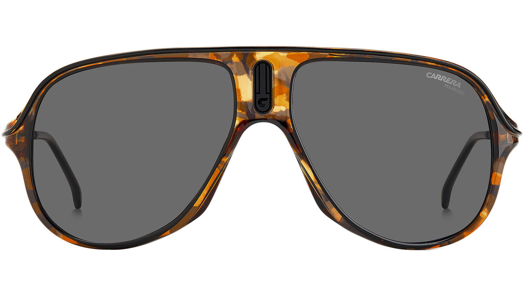 Parte della collezione che celebra il 65° anniversario di Carrera, questi occhiali da sole unisex reinterpretano un design iconico del brand. Il profilo rettangolare oversize è realizzato in acetato ed evidenziato da un’audace barra centrale che ne accentua il mood sportivo e contemporaneo. La caratteristica ‘C’, fieramente posizionata al centro del frontale, e il logo lettering lungo le aste rendono il modello immediatamente riconoscibile dai fan e gli appassionati di stile.