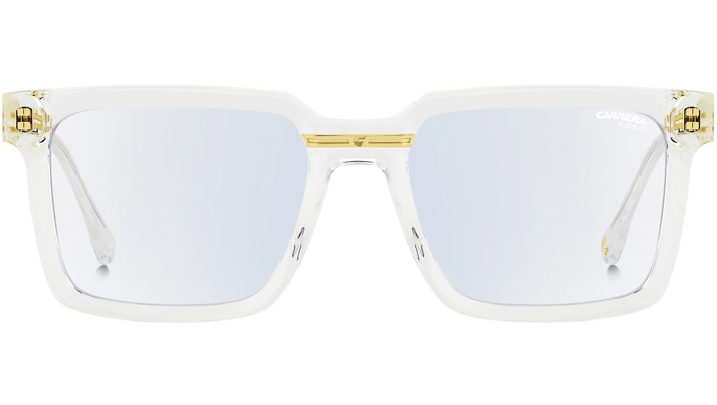 Occhiali da vista Carrera modello Victory C 02/BB colore REJ crystal gold. Il design di questi occhiali da vista Carrera è destinato a fare scuola. La montatura è scolpita in profili decisi, sapientemente rifinita, prodotta in Italia con inconfondibile qualità artigiana. La placca con l’iconica “C” non passa inosservata, posta in orizzontale tra le lenti e ripresa sulle aste per una riconoscibilità assicurata. Le lenti con filtro blue block proteggono dalla luce dei dispositivi elettronici.