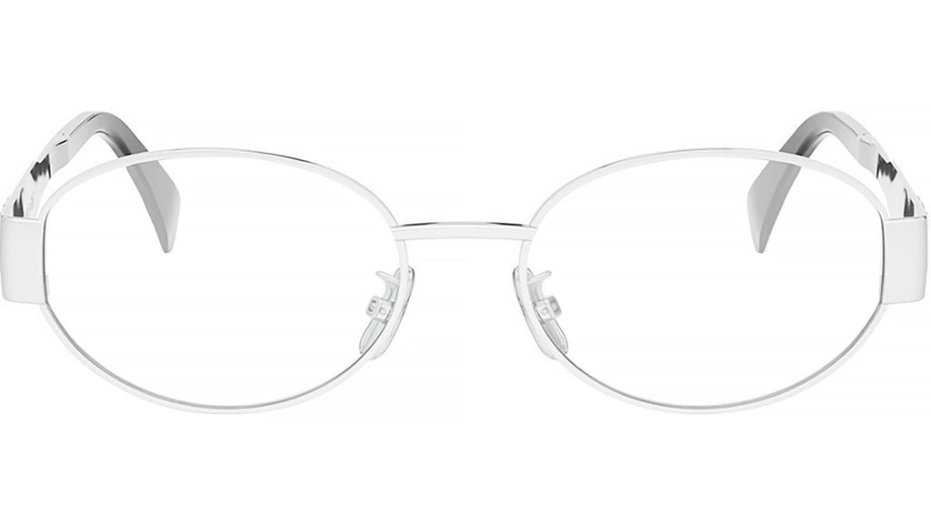 Occhiali da vista CELINE donna CL50140U linea Metal Triomphe colore 016 palladio lucido. Un modello iconico che ha segnato l'introduzione del logo Triomphe metal nella linea eyewear. Rivenditore autorizzato online CELINE. Gli occhiali vengono consegnati con custodia e accessori originali.