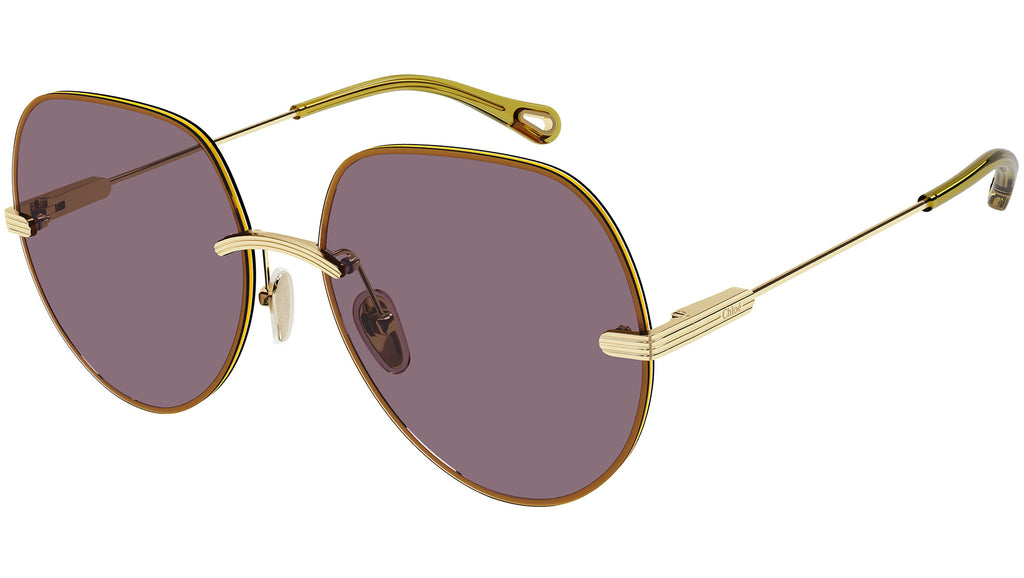 Occhiali da sole Chloé CH0135S donna con montatura pantos in metallo oro lucido classico e lenti lilla tinta unita. Linea: Chloé. Codice modello: CH0135S. Codice colore 58 mm: 003. 61 mm: 007. Made in Italy. Rivenditore autorizzato Chloé online. Gli occhiali vengono consegnati con custodia e accessori originali e sono coperti dalla garanzia ufficiale di 12 mesi del produttore.