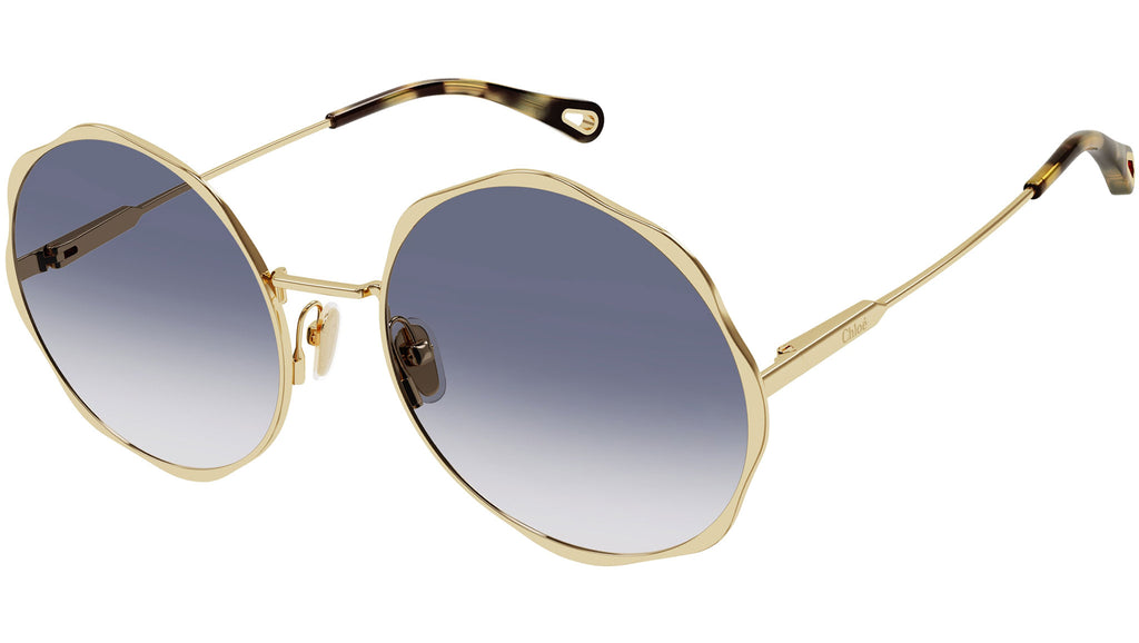 Occhiali da sole Chloé CH0184S 004 donna con montatura pantos in metallo oro lucido classico e lenti blu sfumato. Linea: Chloé. Codice modello: CH0184S. Codice colore: 004. Made in Italy. Rivenditore autorizzato Chloé online. Gli occhiali vengono consegnati con custodia e accessori originali e sono coperti dalla garanzia ufficiale di 12 mesi del produttore.