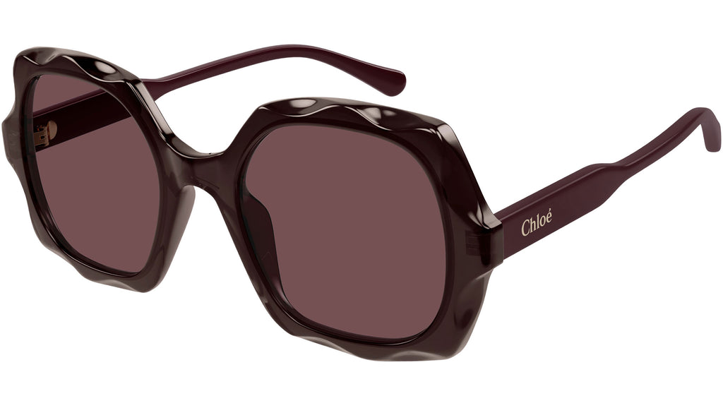 Occhiali da sole Chloé CH0226S 002 donna con montatura rettangolare in acetato riciclato malva scuro trasparente e lenti viola scuro tinta unita. Linea: Chloé. Codice modello: CH0226S. Codice colore: 002. Made in Italy. Rivenditore autorizzato Chloé online. Gli occhiali vengono consegnati con custodia e accessori originali e sono coperti dalla garanzia ufficiale di 12 mesi del produttore.