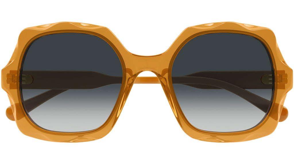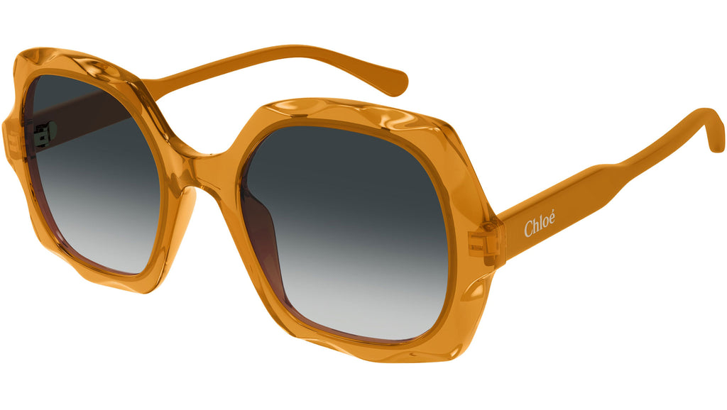 Occhiali da sole Chloé CH0226S 004 donna con montatura rettangolare in acetato riciclato arancio trasparente lucido e lenti sfulatura grigio-verde. Linea: Chloé. Codice modello: CH0226S. Codice colore: 004. Made in Italy. Rivenditore autorizzato Chloé online. Gli occhiali vengono consegnati con custodia e accessori originali e sono coperti dalla garanzia ufficiale di 12 mesi del produttore.