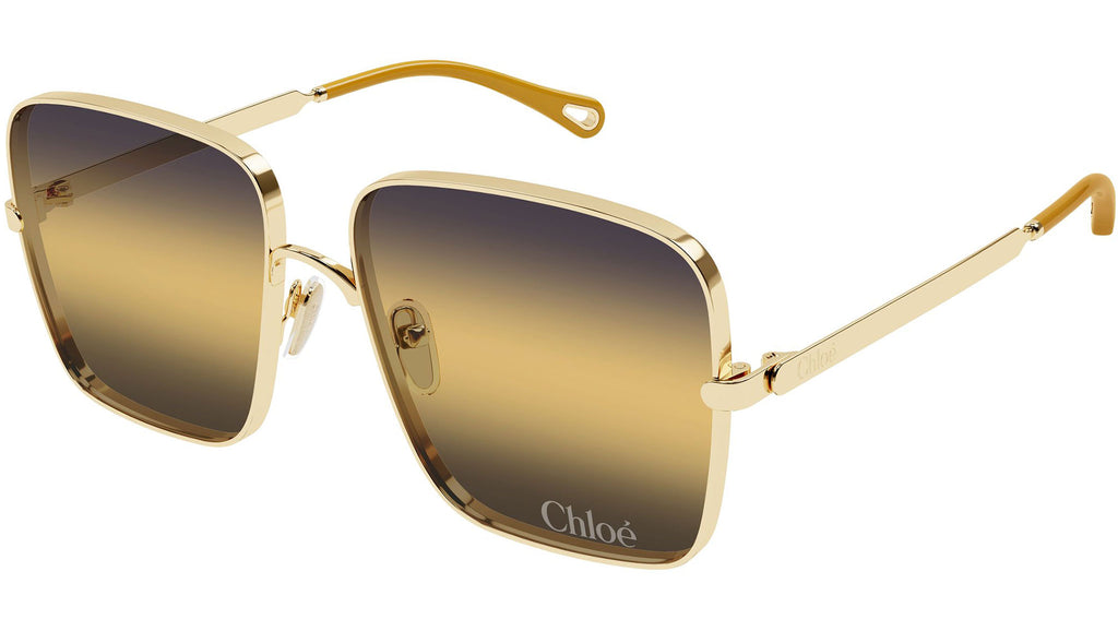 Occhiali da sole Chloé CH0324S 001 donna con montatura rettangolare in metallo oro endura lucido e lenti tripla sfumatura viola / miele / marrone. Linea: Chloé. Codice modello: CH0324S. Codice colore: 001. Made in Italy. Rivenditore autorizzato Chloé online. Gli occhiali vengono consegnati con custodia e accessori originali e sono coperti dalla garanzia ufficiale di 12 mesi del produttore.