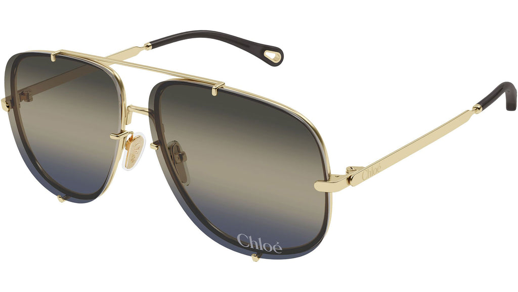 Occhiali da sole Chloé CH0348S 005 donna con montatura aviatore in metallo oro lucido classico e lenti tripla sfumatura blu / crema / verde scuro. Linea: Chloé. Codice modello: CH0348S. Codice colore: 005. Made in Italy. Rivenditore autorizzato Chloé online. Gli occhiali vengono consegnati con custodia e accessori originali e sono coperti dalla garanzia ufficiale di 12 mesi del produttore.