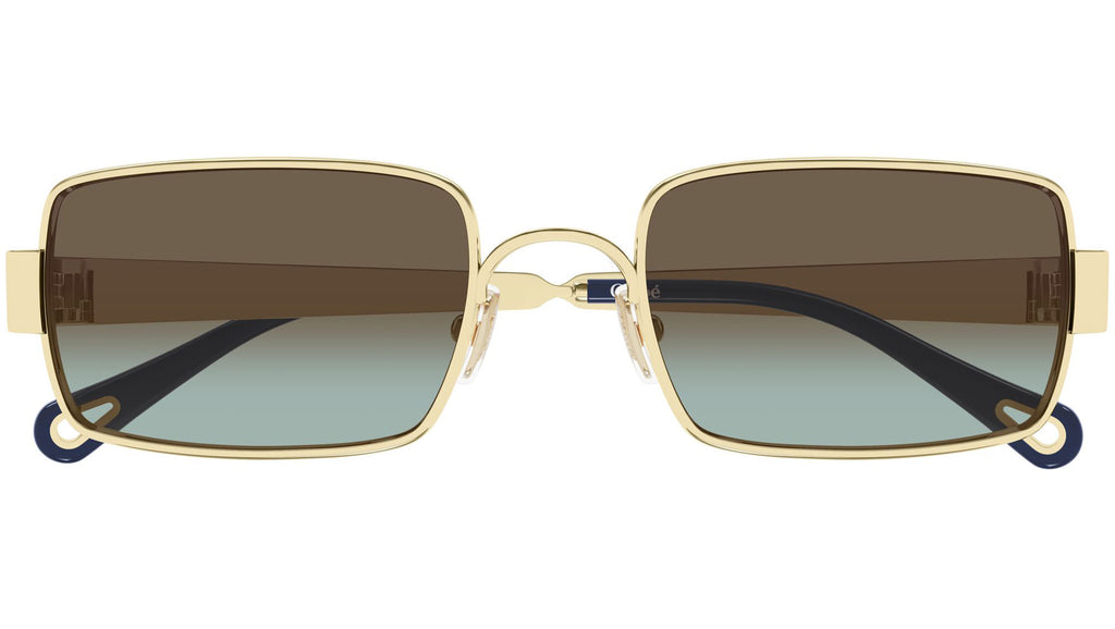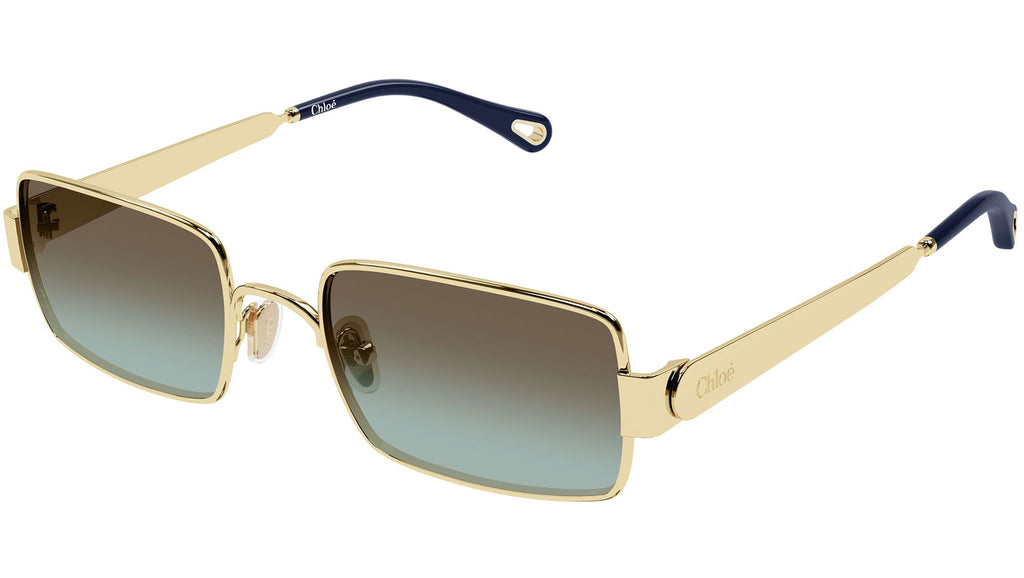 Occhiali da sole Chloé CH0354S 003 donna con montatura rettangolare in metallo oro lucido classico e lenti marrone sfumato a verde acqua doppia sfumatura. Linea: Chloé. Codice modello: CH0354S. Codice colore: 003. Made in Italy. Rivenditore autorizzato Chloé Eyewear online. Gli occhiali vengono consegnati con custodia e accessori originali e sono coperti dalla garanzia ufficiale di 12 mesi del produttore.