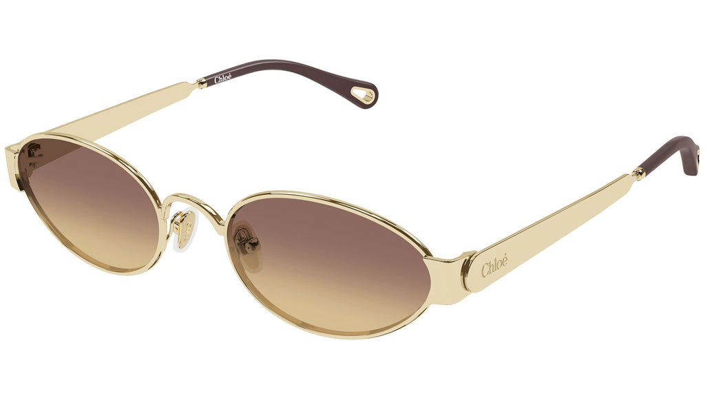 Occhiali da sole Chloé CH0355S 002 donna con montatura pantos in metallo oro lucido classico e lenti marrone sfumato doppio a senape. Linea: Chloé. Codice modello: CH0355S. Codice colore: 002. Made in Italy. Rivenditore autorizzato Chloé Eyewear online. Gli occhiali vengono consegnati con custodia e accessori originali e sono coperti dalla garanzia ufficiale di 12 mesi del produttore.