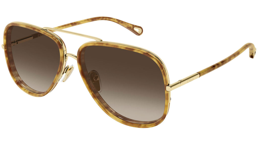 Occhiali da sole Chloé CH0382S 002 donna con montatura aviatore in metallo oro endura lucido e lenti marrone sfumato. Linea: Chloé. Codice modello: CH0382S. Codice colore: 002. Made in Italy. Rivenditore autorizzato Chloé Eyewear online. Gli occhiali vengono consegnati con custodia e accessori originali e sono coperti dalla garanzia ufficiale di 12 mesi del produttore.