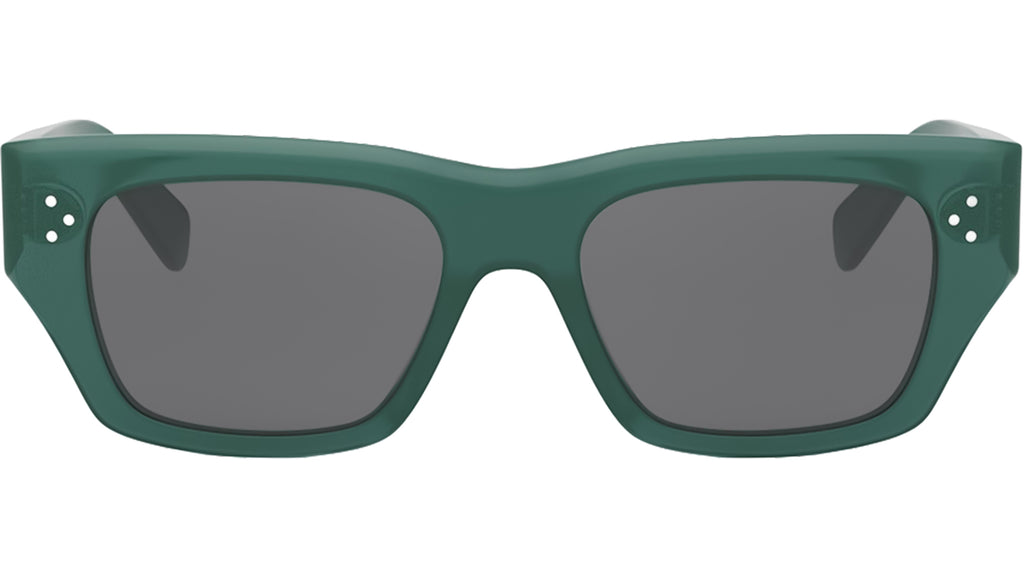 Occhiali da sole CELINE CL40297U 96A uomo con montatura geometrica in acetato verde lucido e lenti color grigio. Linea: 3 Dots HD. Codice modello: CL40297U. Codice colore: 96A. Made in Italy. Rivenditore autorizzato CELINE online. Gli occhiali vengono consegnati con custodia e accessori originali e sono coperti dalla garanzia ufficiale di 12 mesi del produttore.