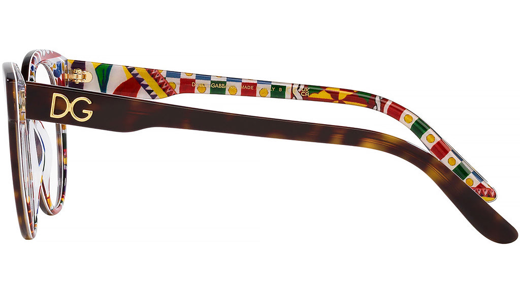Occhiali da vista Dolce&Gabbana modello DG 3334 linea Dna codice colore 3217 avana su bianco barrow in acetato forma panthos con aste color avana su bianco barrow.