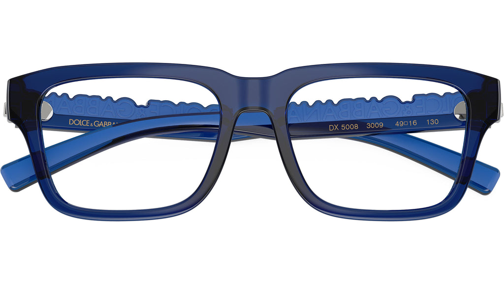 Occhiali da vista Dolce & Gabbana Kids DX 5008 3009 con montatura rettangolare in iniettato color blu scuro trasparente e lenti demo. Fit universale. Linea: Dna. Codice modello: 0DX5008. Codice colore: 3009. Made in Italy. Rivenditore autorizzato Dolce & Gabbana Kids online. Gli occhiali vengono consegnati con custodia e accessori originali e sono coperti dalla garanzia ufficiale di 12 mesi del produttore.