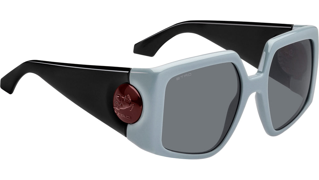 Occhiali da sole ETRO modello 0038/S codice colore MVU 2K in Injected azzurro con lenti in CR-39 grigio antiriflesso. Questi occhiali da sole da donna incarnano l'eleganza unica di ETRO: una fusione di linee grafiche, dettagli heritage e innovazione tecnica. Inconfondibili e audaci, le montature presentano una forma geometrica squadrata e oversize, completata da distintive aste triangolari. Il logo Pegaso a rilievo, realizzato senza parti metalliche, nasconde una innovativa cerniera integrata: una decorazione emblematica che fonde estetica e funzionalità. Le rifiniture riflettono la cura del brand per ogni minimo dettaglio, dagli iconici terminali ispirati alla simmetria del logo alla scritta "ETRO" incisa al laser sulla lente colorata. Rivenditore autorizzato online Dsquared2.
