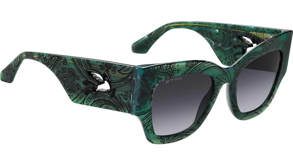 Occhiali da sole Etro 0076/S JRI 9O donna con montatura rettangolare in acetato verde marmo e lenti in CR-39 grigio scuro sfumato. Autenticamente ETRO, questi occhiali da sole sono una vera dichiarazione di stile. La forma audace e la costruzione raffinata sono esaltate dall'inaspettato dettaglio Pegaso cut-out in metallo. Realizzati in acetato premium sviluppato esclusivamente per il brand, sono rifiniti con un processo di fresatura che garantisce un design impeccabile. Le varianti disponibili spaziano dai classici nero e bordeaux di ETRO al motivo Paisley, che dona una nuova energia ai codici iconici del brand. Linea: Etromania. Codice modello: 207798. Codice colore: JRI 9O. Rivenditore autorizzato Etro online. Gli occhiali vengono consegnati con custodia e accessori originali e sono coperti dalla garanzia ufficiale di 12 mesi del produttore.