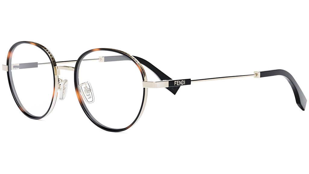 Occhiali da vista Fendi FE50052U 032 in metallo avana oro con lenti demo. La collezione Fendi Travel di montature da vista Maison Fendi coniuga in modo squisito eleganza e comfort, in occhiali raffinati, per chi ama vestire il lusso e la qualità. La collezione eyewear offre una ampia gamma di stili e design, che soddisfano gusti e preferenze diverse. Maison Fendi ha qualcosa di speciale anche per l'occhio più esigente. Ogni design è meticolosamente realizzato con la massima attenzione ai dettagli, utilizzando materiali premium, per offrire non solo eleganza ma anche comfort e durabilità.