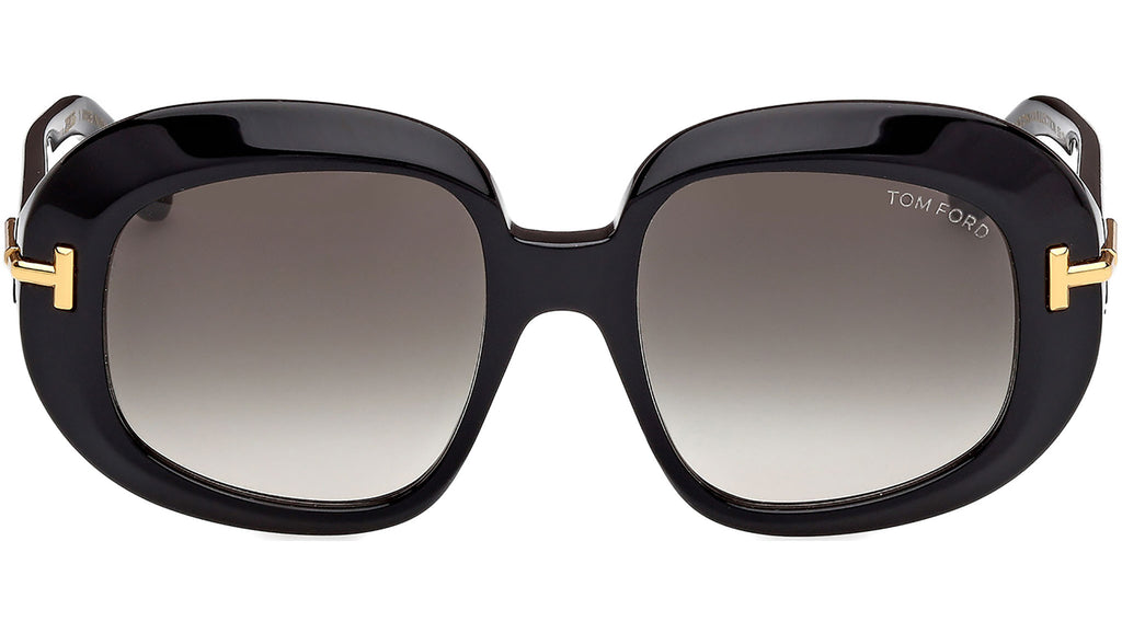 Occhiali da sole Tom Ford donna modello Icon FT1237 con montatura rotonda full-rim in acetato nero lucido e lenti color grigio fumo sfumato. Codice Brand: 1237. Codice colore: 01B. Rivenditore autorizzato Tom Ford online. Gli occhiali vengono consegnati con custodia e accessori originali e sono coperti da garanzia standard di 12 mesi del produttore.