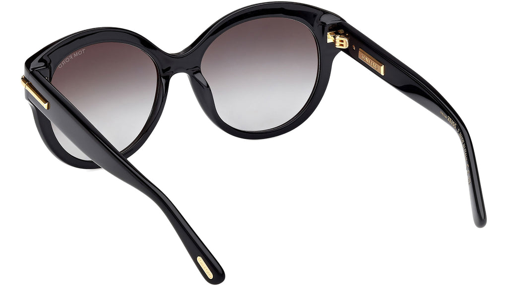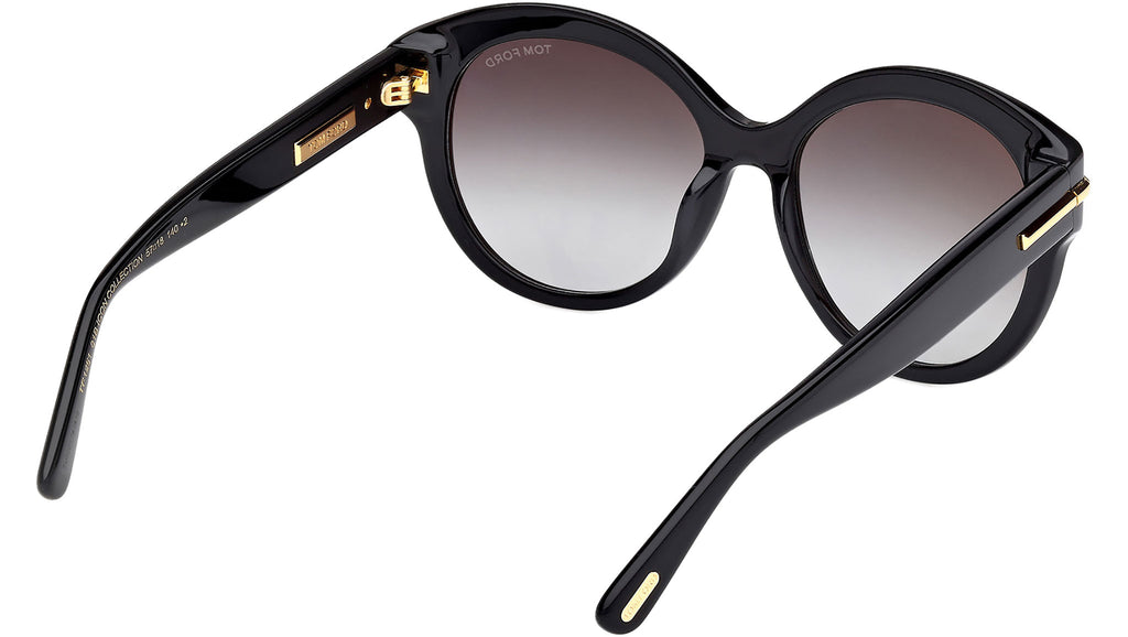 Occhiali da sole Tom Ford donna modello Icon FT1251 con montatura rotonda full-rim in acetato nero lucido e lenti color grigio fumo sfumato. Codice Brand: 1251. Codice colore: 01B. Rivenditore autorizzato Tom Ford online. Gli occhiali vengono consegnati con custodia e accessori originali e sono coperti da garanzia standard di 12 mesi del produttore.