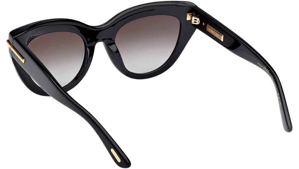 Occhiali da sole Tom Ford donna modello Icon FT1252 con montatura cat eye full-rim in acetato nero lucido e lenti color grigio fumo sfumato. Codice Brand: 1252. Codice colore: 01B. Rivenditore autorizzato Tom Ford online. Gli occhiali vengono consegnati con custodia e accessori originali e sono coperti da garanzia standard di 12 mesi del produttore.