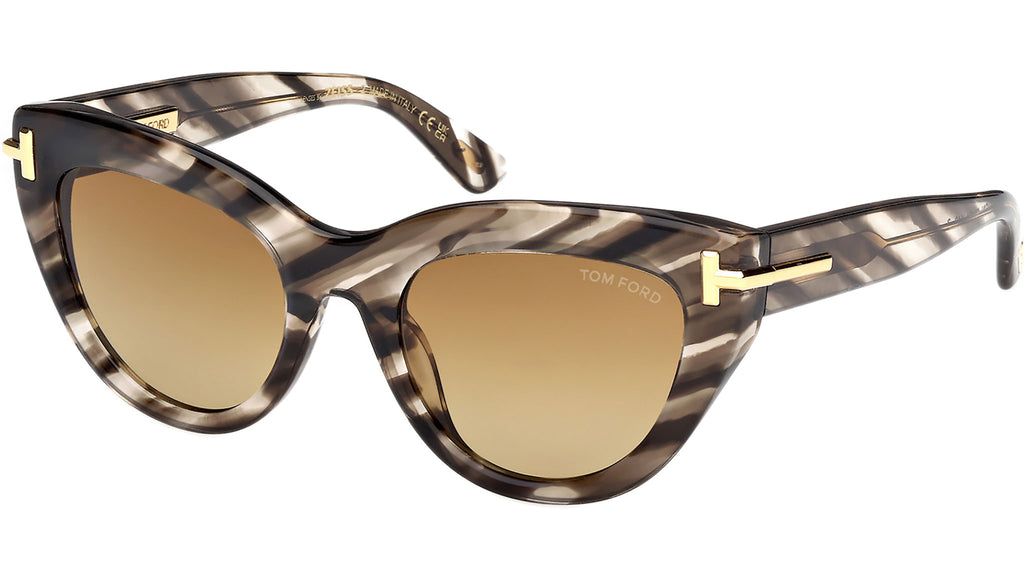 Occhiali da sole Tom Ford donna modello Icon FT1252 con montatura cat eye full-rim in acetato avana colorato e lenti color marrone sfumato. Codice Brand: 1252. Codice colore: 55F. Rivenditore autorizzato Tom Ford online. Gli occhiali vengono consegnati con custodia e accessori originali e sono coperti da garanzia standard di 12 mesi del produttore.