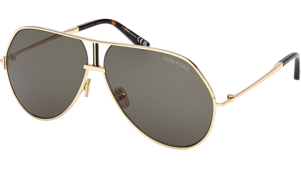Occhiali da sole Tom Ford uomo modello Rickie-02 FT1281 con montatura navigator full-rim in metallo oro intenso e lenti color verde. Codice Brand: 1281. Codice colore: 30N. Rivenditore autorizzato Tom Ford online. Gli occhiali vengono consegnati con custodia e accessori originali e sono coperti da garanzia standard di 12 mesi del produttore.
