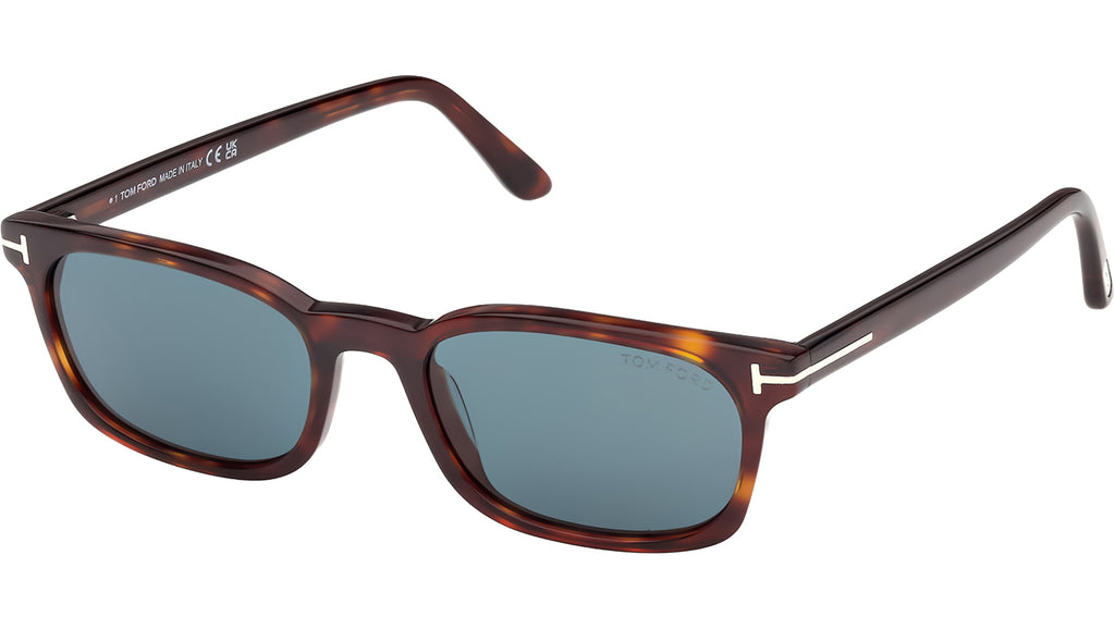 Occhiali da sole Tom Ford uomo modello Miles-02 FT1300 con montatura rettangolare full-rim in acetato rosso avana e lenti color blu. Codice Brand: 1300. Codice colore: 54V. Rivenditore autorizzato Tom Ford online. Gli occhiali vengono consegnati con custodia e accessori originali e sono coperti da garanzia standard di 12 mesi del produttore.