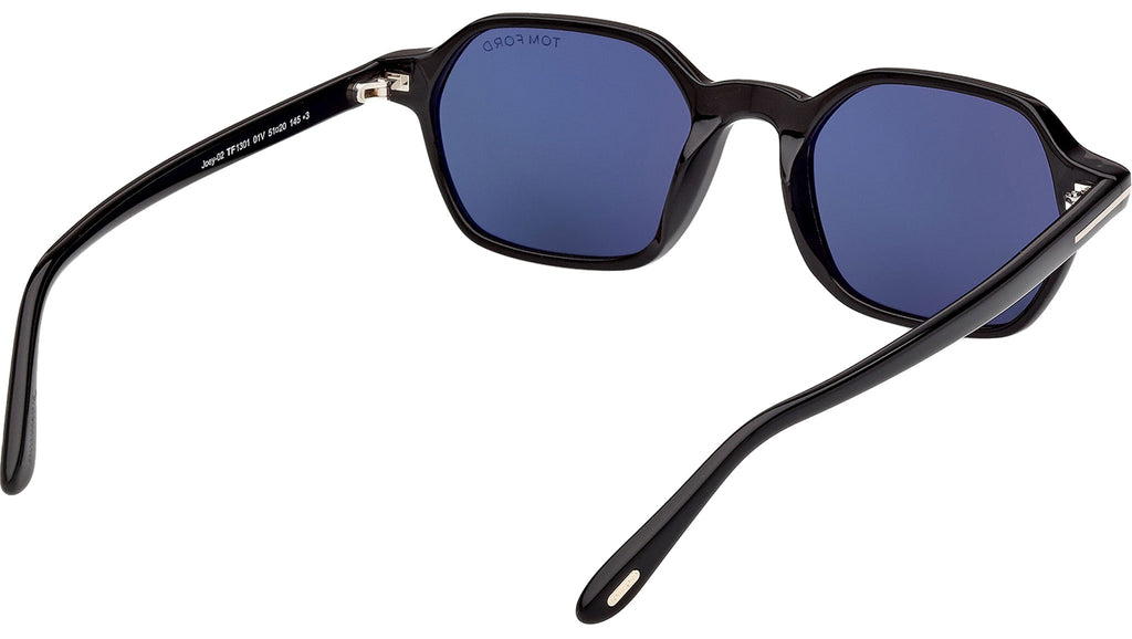 Occhiali da sole Tom Ford uomo modello Joey-02 FT1301 con montatura geometrica full-rim in acetato nero lucido e lenti color blu. Codice Brand: 1301. Codice colore: 01V. Rivenditore autorizzato Tom Ford online. Gli occhiali vengono consegnati con custodia e accessori originali e sono coperti da garanzia standard di 12 mesi del produttore.