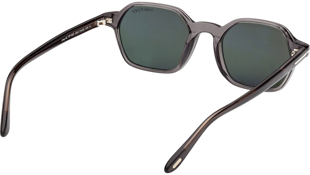 Occhiali da sole Tom Ford uomo modello Joey-02 FT1301 con montatura geometrica full-rim in acetato grigio lucido e lenti color verde. Codice Brand: 1301. Codice colore: 20N. Rivenditore autorizzato Tom Ford online. Gli occhiali vengono consegnati con custodia e accessori originali e sono coperti da garanzia standard di 12 mesi del produttore.