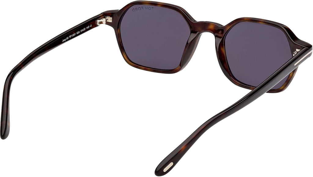 Occhiali da sole Tom Ford uomo modello Joey-02 FT1301 con montatura geometrica full-rim in acetato avana scuro e lenti color grigio fumo. Codice Brand: 1301. Codice colore: 52A. Rivenditore autorizzato Tom Ford online. Gli occhiali vengono consegnati con custodia e accessori originali e sono coperti da garanzia standard di 12 mesi del produttore.