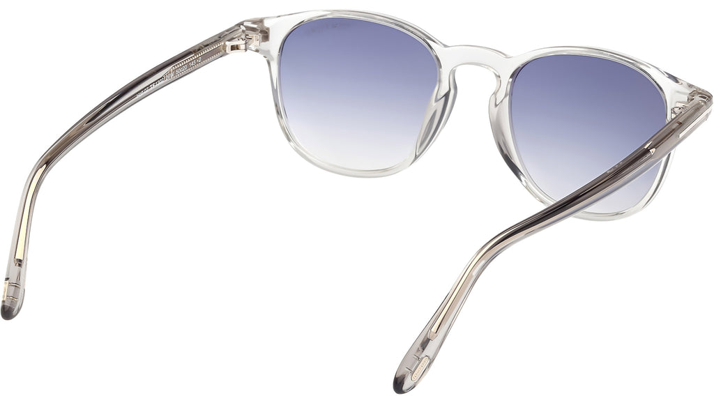 Occhiali da sole Tom Ford uomo modello Holt-02 FT1302 con montatura rotonda full-rim in acetato grigio lucido e lenti color blu sfumato. Codice Brand: 1302. Codice colore: 20W. Rivenditore autorizzato Tom Ford online. Gli occhiali vengono consegnati con custodia e accessori originali e sono coperti da garanzia standard di 12 mesi del produttore.