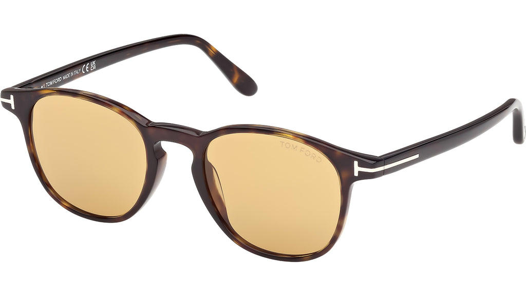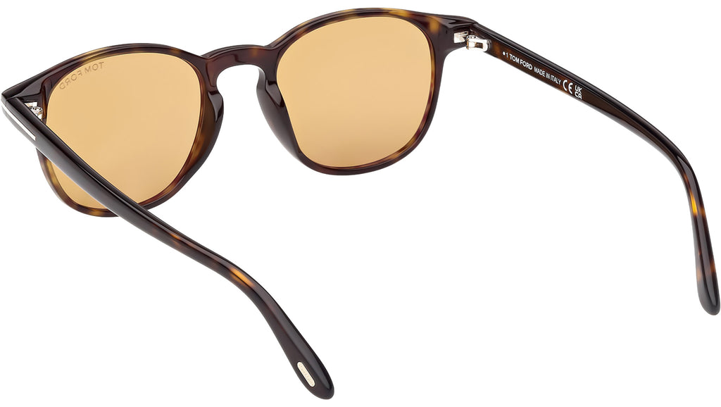 Occhiali da sole Tom Ford uomo modello Holt-02 FT1302 con montatura rotonda full-rim in acetato avana scuro e lenti color marrone. Codice Brand: 1302. Codice colore: 52E. Rivenditore autorizzato Tom Ford online. Gli occhiali vengono consegnati con custodia e accessori originali e sono coperti da garanzia standard di 12 mesi del produttore.