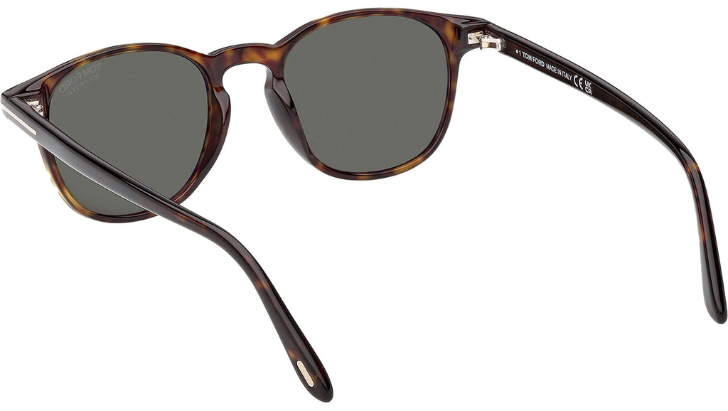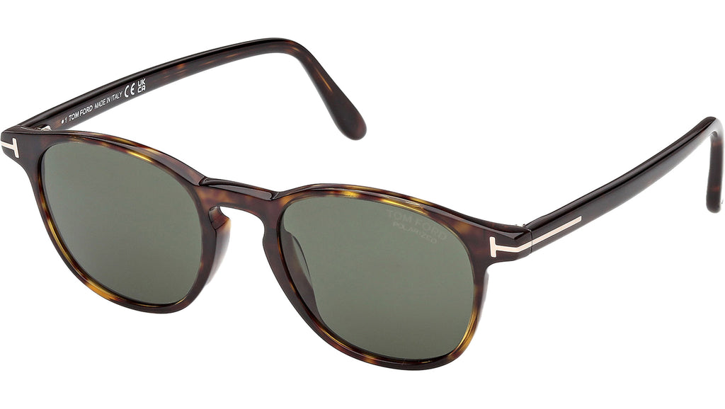 Occhiali da sole Tom Ford uomo modello Holt-02 FT1302 con montatura rotonda full-rim in acetato avana scuro e lenti color verde polarizzato. Codice Brand: 1302. Codice colore: 52R. Rivenditore autorizzato Tom Ford online. Gli occhiali vengono consegnati con custodia e accessori originali e sono coperti da garanzia standard di 12 mesi del produttore.