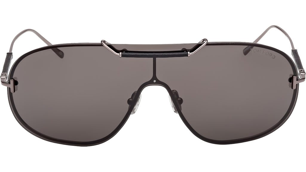 Occhiali da sole Tom Ford unisex modello Tyler-02 FT1309 con montatura mascherina full-rim in metallo canna di fucile lucido e lenti color grigio fumo. Codice Brand: 1309. Codice colore: 08A. Rivenditore autorizzato Tom Ford online. Gli occhiali vengono consegnati con custodia e accessori originali e sono coperti da garanzia standard di 12 mesi del produttore.