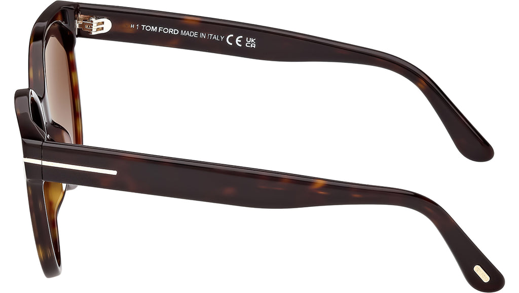 Occhiali da sole Tom Ford donna modello Tallulah-02 FT1311 con montatura rotonda full-rim in acetato avana scuro e lenti color grigio fumo sfumato. Codice Brand: 1311. Codice colore: 52B. Rivenditore autorizzato Tom Ford online. Gli occhiali vengono consegnati con custodia e accessori originali e sono coperti da garanzia standard di 12 mesi del produttore.
