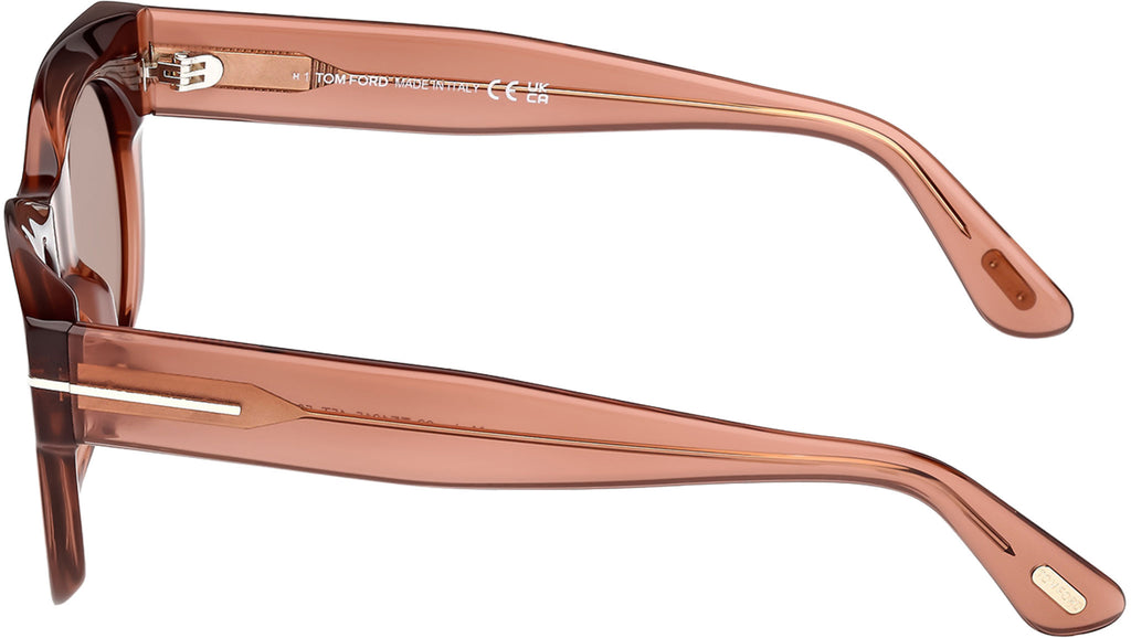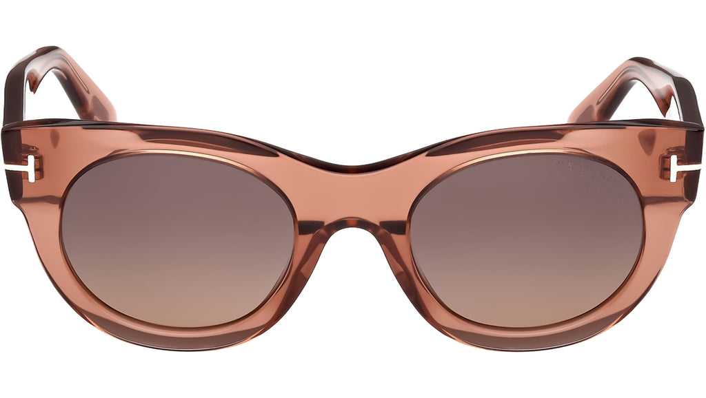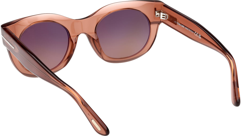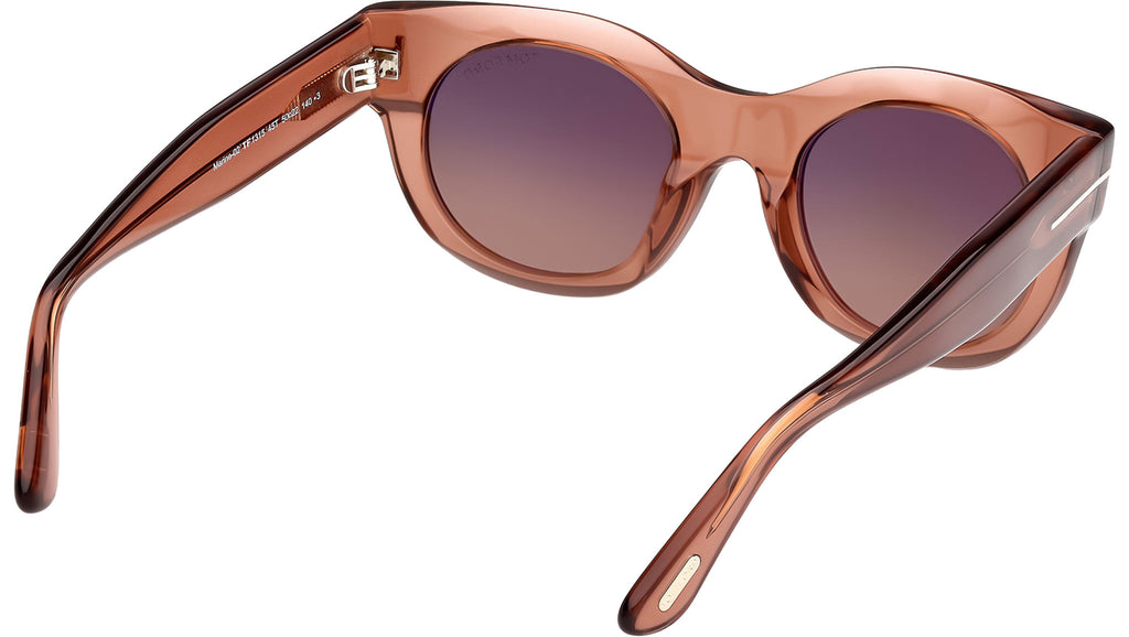 Occhiali da sole Tom Ford donna modello Marine-02 FT1315 con montatura rotonda full-rim in acetato marrone chiaro e lenti color bordeaux sfumato. Codice Brand: 1315. Codice colore: 45T. Rivenditore autorizzato Tom Ford online. Gli occhiali vengono consegnati con custodia e accessori originali e sono coperti da garanzia standard di 12 mesi del produttore.
