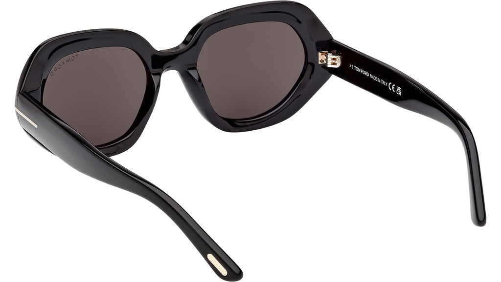 Occhiali da sole Tom Ford donna modello April-02 FT1317 con montatura geometrica full-rim in acetato nero lucido e lenti color grigio fumo. Codice Brand: 1317. Codice colore: 01A. Rivenditore autorizzato Tom Ford online. Gli occhiali vengono consegnati con custodia e accessori originali e sono coperti da garanzia standard di 12 mesi del produttore.
